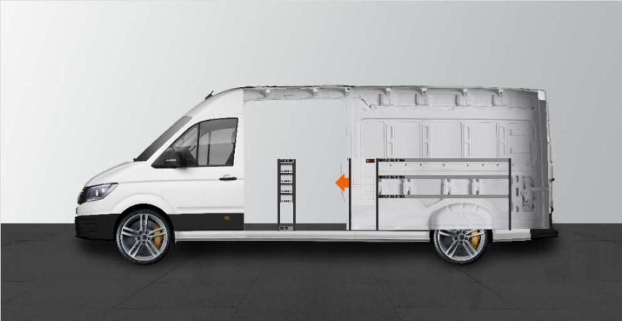 Möchten Sie Ihren MAN TGE & Volkswagen Crafter L4 mit einem weiteren Regal ausstatten? Diese Einrichtung ermöglicht es Ihnen, die Breite im Fahrzeuginneren beizubehalten, da die Tiefe der Einrichtung 260 mm beträgt. Die Einrichtung hat 3 verschieden große Schubladen auf Kugellagerschienen, mit denen sich unterschiedliche Aufbewahrungsmöglichkeiten schaffen lassen. Diese können durch Einsätze ergänzt werden, um Ordnung in Ihr Kleinteilsortiment zu bringen. Der Regalstauraum hinter der Schubladeneinheit wird häufig mit Modulboxen ergänzt. Das verteilte Ladegewicht in den Schubladen auf den Kugellagerschienen beträgt 35 kg/St. Die Schubladen-Innenmaße sind B: 163, T: 387, H: 130 (mm).