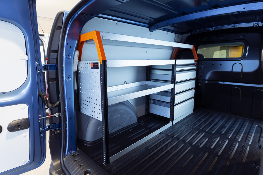 Mit der Serie Work System V-LS3 bieten wir Ihnen ein Fahrzeugregal für Berlingo, Combo, Proace City & Partner L2, bestehend aus einem Regal mit drei Schubladen, ausgestattet mit Kugellagerschienen.
