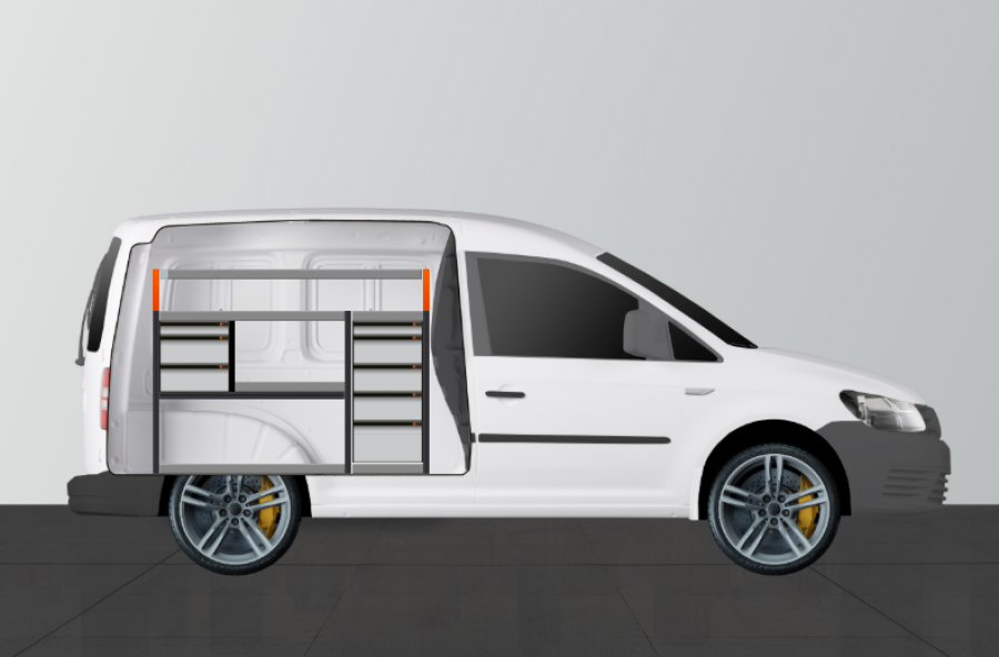 Die Regalserie V-ADV zeichnet sich durch eine komplette Schubladeneinheit ggü. der Seitentür und einen weiteren Schubladenblock im Heck aus. Weitere Informationen zu den von Work System verwendeten Schubladen finden Sie weiter unten auf dieser Seite.