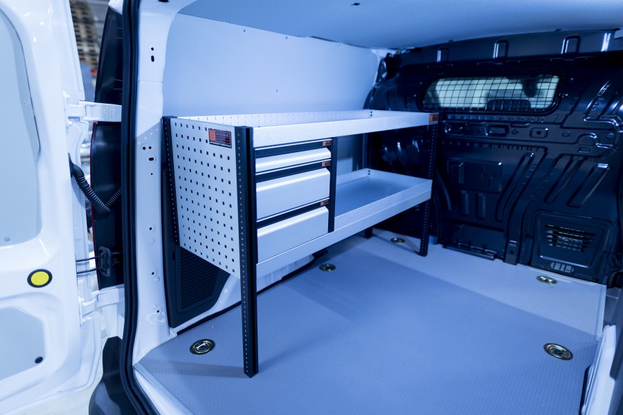 Eine preisgünstige Alternative für alle, die eine Kombination aus Schubladen auf Kugellagerschienen und Regalböden für ihren Ford Connect L1 suchen. Dank einer Tiefe der Einrichtung von 420 mm lassen sich die meisten auf dem Markt erhältlichen Werkzeugtaschen/-koffer problemlos verstauen. Die Schubladen werden gerne durch unsere Schubladeneinsätze und Trennwände ergänzt, die es Ihnen erleichtern, Ordnung in Ihr Kleinteilsortiment zu bringen.