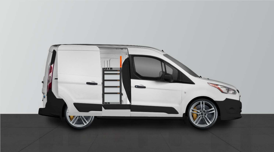 Dies ist eines der beliebtesten Systeme für den Ford Connect L1 mit Seitentür auf der Seite der Einrichtung. Die Einrichtung bietet gute Aufbewahrungsmöglichkeiten für Werkzeugtaschen/-koffer, Maschinen und Kleinteile. Sie umfasst eine Schubladeneinheit mit 5 Schubladen in verschiedenen Größen, damit jeder Ausrüstungsgegenstand seinen Platz erhält. Hinter den Schubladen befindet sich eine Werkzeugtafel, die zusätzliche Aufhängungsmöglichkeiten im Fahrzeug bietet. Die Schubladen auf Kugellagerschienen werden häufig durch unsere neuen Schubladeneinsätze und Trennwände ergänzt, um maximale Ordnung und Übersichtlichkeit zu gewährleisten. Die Regalwand wird gerne auch durch unsere Smartboxen ergänzt, um den Stauraum zu maximieren.