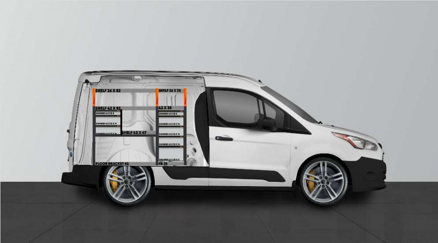 V-ADV Fahrzeugeinrichtungen für den Ford Connect L1 verfügen über acht Schubladen. Die Schubladen sind im Lieferumfang enthalten. Durch Schubladenabteiler kann jede Schublade unterteilt werden.