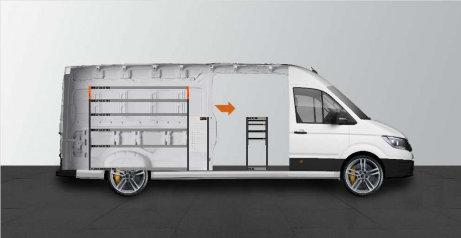 Eines der beliebstesten Fahrzeugregel für Ihren MAN TGE & Volkswagen Crafter L4. Die Einrichtung bietet vielfältige Aufbewahrungsmöglichkeiten, da die Schubladen auf Kugellagerschienen einen einfachen Zugang über die Seitentür bieten; die Schubladen können in Fahrtrichtung herausgezogen werden, um eine gute Übersichtlichkeit zu bieten. Die Schubladen können um Trennwände ergänzt werden, um mehr Ordnung und Struktur beim Kleinteilsortiment zu schaffen. Unsere tiefen Regalböden bieten außerdem gute Aufbewahrungsmöglichkeiten für Werkzeugtaschen/-koffer und kleinere Maschinen. Das verteilte Ladegewicht in den Schubladen der Kugellagerschienen beträgt 35 kg/St. Die Schubladen-Innenmaße sind B: 308, T: 387, H: 60 und H: 130 (mm).