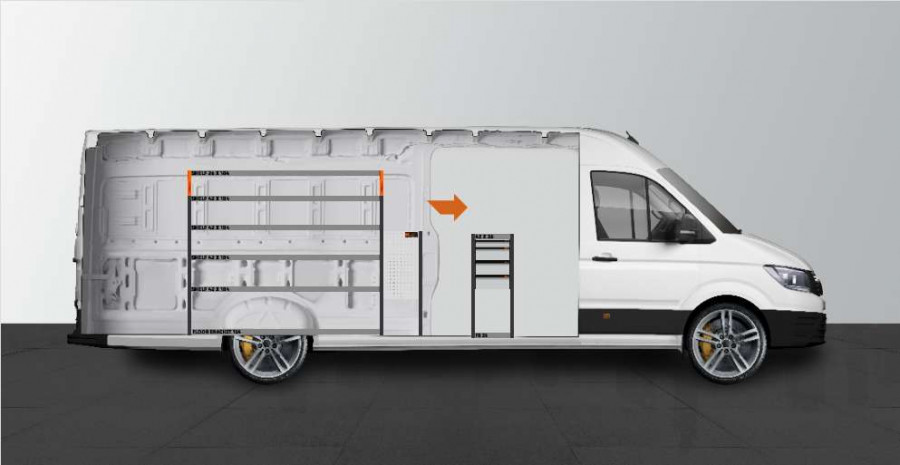 Eines der beliebstesten Fahrzeugregel für Ihren MAN TGE & Volkswagen Crafter L5. Die Einrichtung bietet vielfältige Aufbewahrungsmöglichkeiten, da die Schubladen auf Kugellagerschienen einen einfachen Zugang über die Seitentür bieten; die Schubladen können in Fahrtrichtung herausgezogen werden, um eine gute Übersichtlichkeit zu bieten. Die Schubladen können um Trennwände ergänzt werden, um mehr Ordnung und Struktur beim Kleinteilsortiment zu schaffen. Unsere tiefen Regalböden bieten außerdem gute Aufbewahrungsmöglichkeiten für Werkzeugtaschen/-koffer und kleinere Maschinen. Das verteilte Ladegewicht in den Schubladen der Kugellagerschienen beträgt 35 kg/St. Die Schubladen-Innenmaße sind B: 308, T: 387, H: 60 und H: 130 (mm).