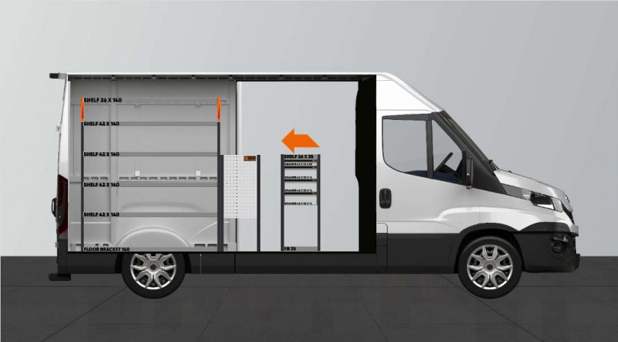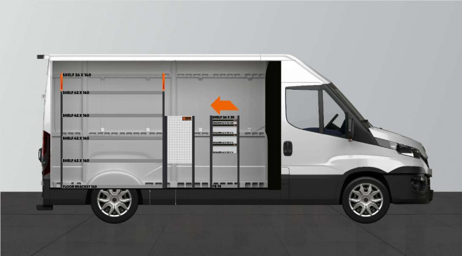 Eines der beliebstesten Fahrzeugregel für Ihren Iveco Daily L2. Die Einrichtung bietet vielfältige Aufbewahrungsmöglichkeiten, da die Schubladen auf Kugellagerschienen einen einfachen Zugang über die Seitentür bieten; die Schubladen können in Fahrtrichtung herausgezogen werden, um eine gute Übersichtlichkeit zu bieten. Die Schubladen können um Trennwände ergänzt werden, um mehr Ordnung und Struktur beim Kleinteilsortiment zu schaffen. Unsere tiefen Regalböden bieten außerdem gute Aufbewahrungsmöglichkeiten für Werkzeugtaschen/-koffer und kleinere Maschinen. Das verteilte Ladegewicht in den Schubladen der Kugellagerschienen beträgt 35 kg/St. Die Schubladen-Innenmaße sind B: 308, T: 387, H: 60 und H: 130 (mm).