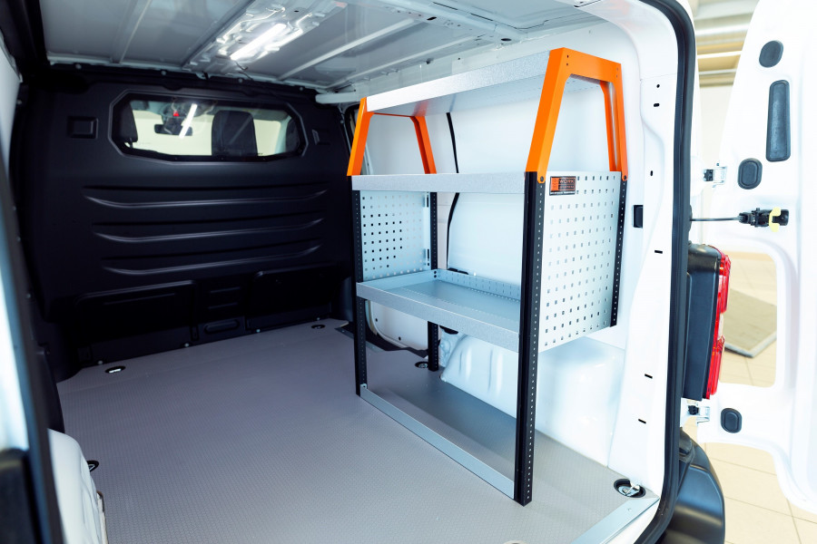 Eine kürzere Fahrzeugeinrichtung für Ihren Maxus e-Deliver 3 L1, die gute Aufbewahrungsmöglichkeiten für Werkzeugtaschen/-koffer, Maschinen und Kleinteile bietet. Die Regalböden der Einrichtung haben eine Tiefe von 420 mm, dank derer sich die meisten auf dem Markt erhältlichen Werkzeugtaschen/-koffer problemlos verstauen lassen. Das obere Regal mit 262,5 mm wird oft durch unsere Modulboxen ergänzt, um Platz für die Aufbewahrung von Kleinteilen zu schaffen. Die Einrichtung ist für Fahrzeuge mit und ohne Seitentüren geeignet. Vergessen Sie nicht, die Werkzeugtafel der Regalwand zu nutzen.