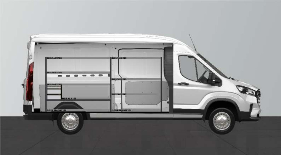 Eine preisgünstige Alternative für alle, die eine Kombination aus Schubladen auf Kugellagerschienen und Regalböden für ihren Maxus e-Deliver9 L3 suchen. Dank einer Tiefe der Einrichtung von 420 mm lassen sich die meisten auf dem Markt erhältlichen Werkzeugtaschen/-koffer problemlos verstauen. Die Schubladen werden gerne durch unsere Schubladeneinsätze und Trennwände ergänzt, die es Ihnen erleichtern, Ordnung in Ihr Kleinteilsortiment zu bringen.