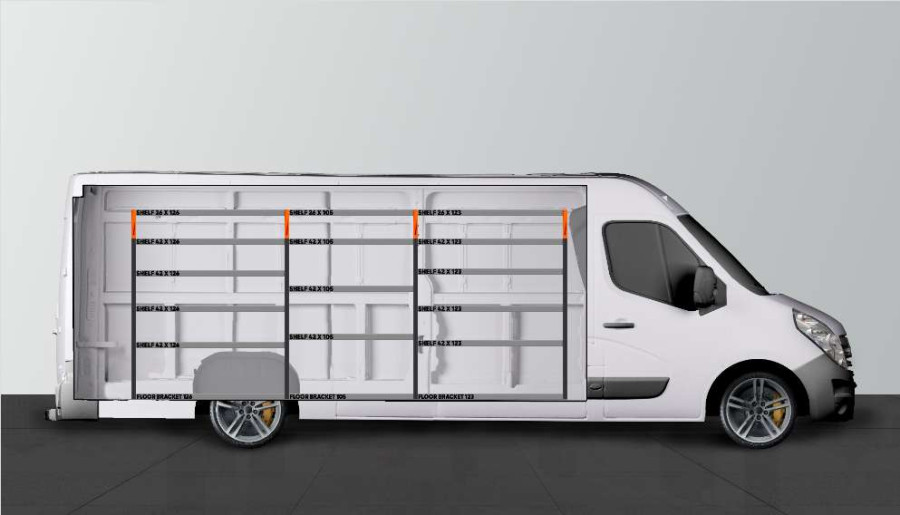 Dieses Fahrzeugregal wurde für den Einsatz im Movano, Master & NV400 L4 entworfen.
