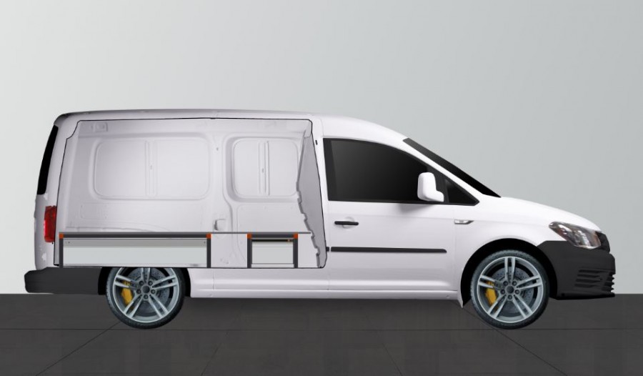 Unterflursystem H:290 mm 3-Schubladen für VW Caddy L2 mit Loyds-Wand (bis 2020)