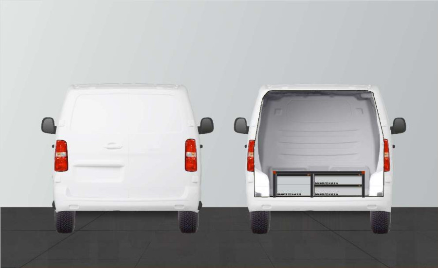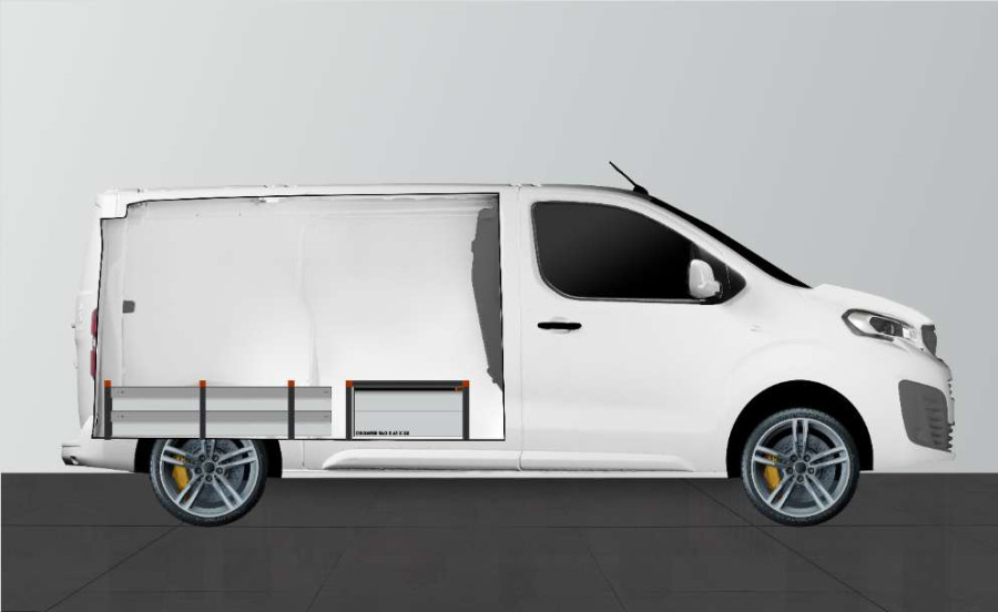 Das Unterflursystem ist geeignet für Peugeot Expert L2, Opel Vivaro L2 2020, Citroën Jumpy L2 & Toyota Medium mit Standard-Komfortwand.