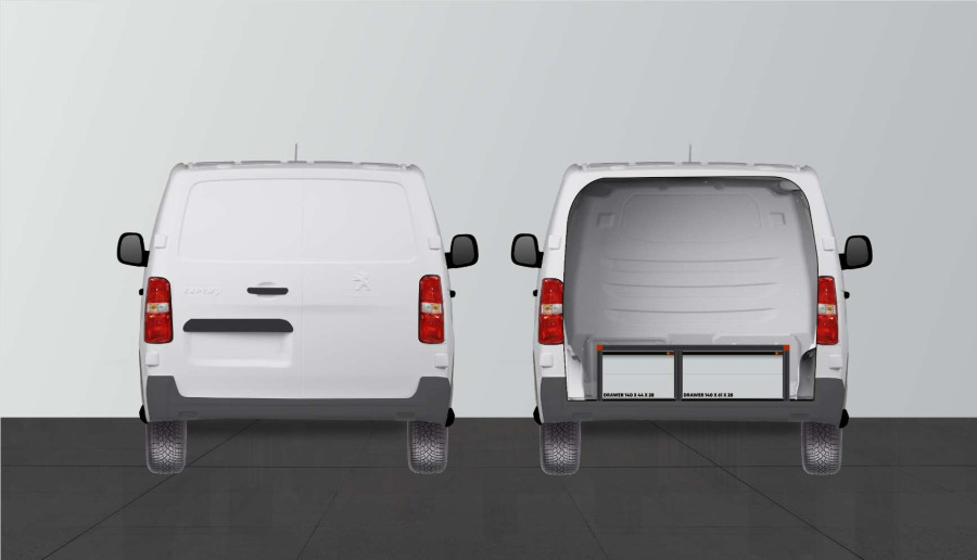 Das Unterflursystem ist geeignet für Peugeot Expert L3, Opel Vivaro L3 2020, Citroën Jumpy L3 & Toyota Long mit Standard-Komfortwand.