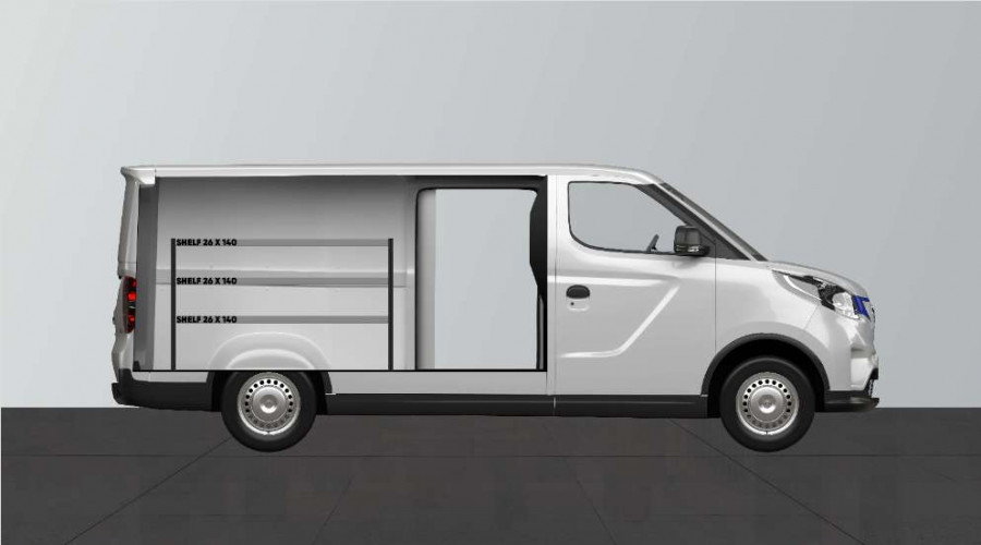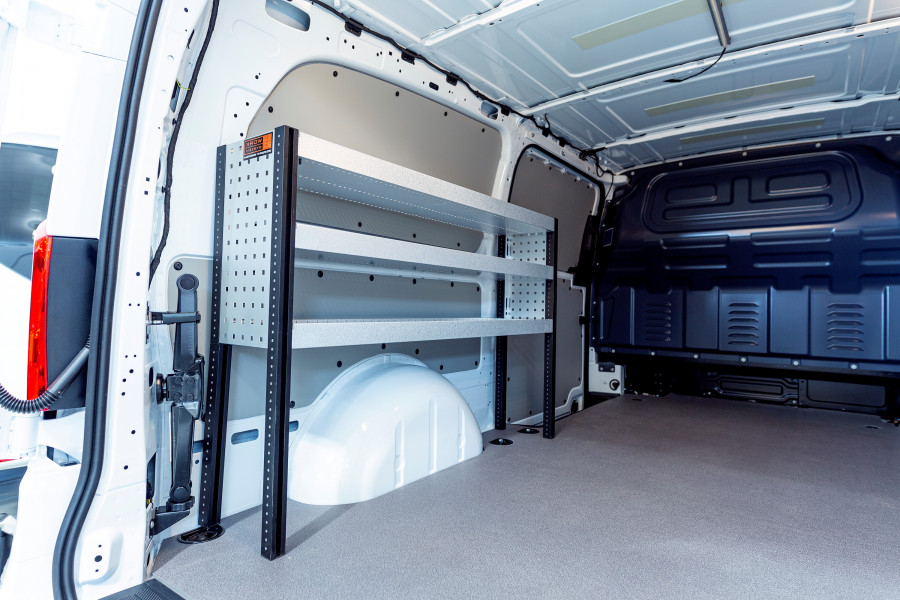 Un aménagement utilitaire un peu plus court avec une profondeur de 262,5 mm pour ceux qui souhaitent conserver la largeur de leur Maxus e-Deliver 3 L2. L’aménagement offre d’excellentes possibilités de rangement pour les articles de petite taille comme les boîtes de vis et les petits objets pour les professionnels du bâtiment, les électriciens, les plombiers et les chauffagistes. L’aménagement est adapté aux véhicules avec ou sans porte latérale et peut être complété par nos bacs modulaires. Une autre solution populaire consiste à compléter les panneaux perforés avec nos accessoires Smartbox ou crochets pour optimiser l’espace de rangement.