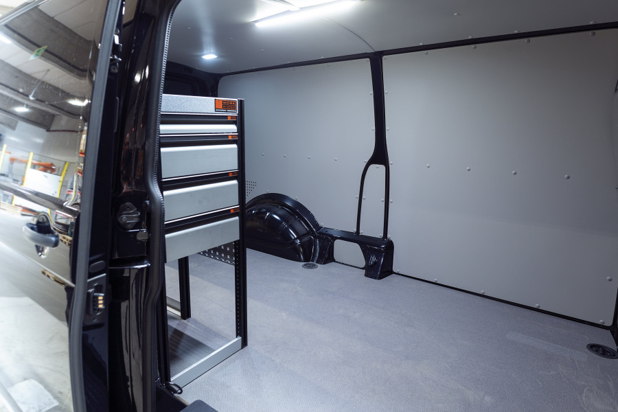 Aménagement utilitaire avec tiroirs facilement accessibles par la porte latérale de votre Expert, Jumpy, Vivaro, Scudo & ProAce.