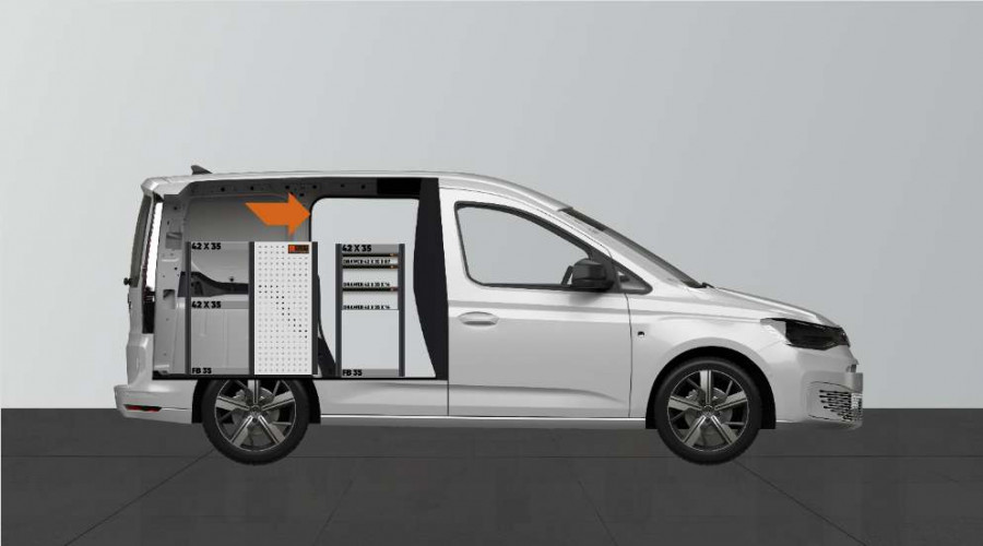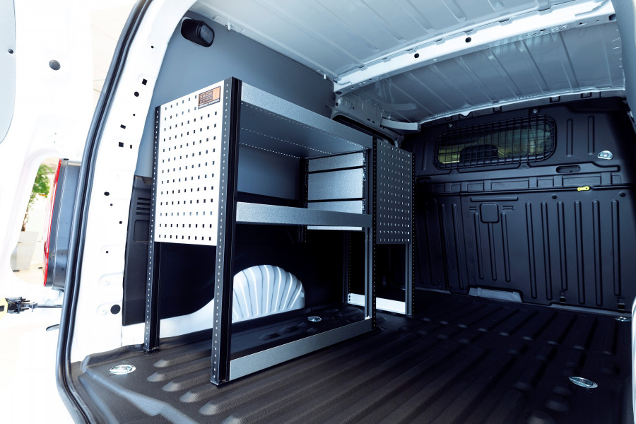 L'un des aménagements les plus populaires pour votre VW Caddy Cargo & Ford Connect L1. L’aménagement avec une profondeur de 420 mm dispose de trois tiroirs de différentes tailles afin de varier les possibilités de rangement. Les tiroirs s’ouvrent facilement depuis la porte latérale coulissante et peuvent supporter une charge uniforme de 50 kg / tiroir. L’espace étagère derrière le bloc tiroir est idéal pour ranger vos mallettes, outils ou consommables mais peut aussi se compléter avec notre système de bacs de rangement sur rails
