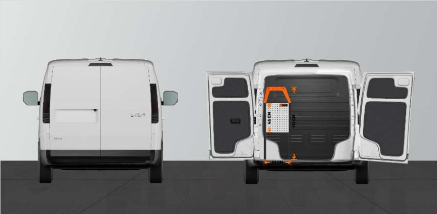 L’aménagement BASE42 vous offre un excellent espace de rangement pour votre KIA PV5 L2H1.