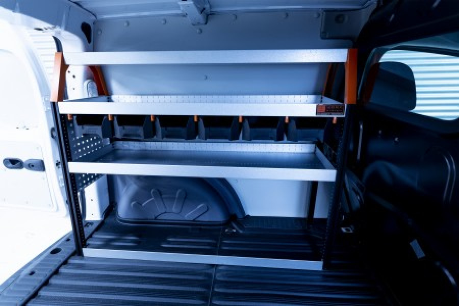 Un aménagement utilitaire conçu pour ceux décidés dès le départ à garder leurs Kangoo Citan Townstar L1 bien organisés et bien rangés. Il est équipé de six de nos nouveaux bacs modulaires intelligents que vous pouvez extraire facilement le long de rails prévus à cet effet. Vous pouvez également ajuster et déplacer ces bacs à votre gré le long des rayonnages. Vous disposez ainsi d’excellentes possibilités de rangement pour vos mallettes d’outils, votre outillage électroportatif et votre équipement, car les étagères ont une profondeur de 420 mm.