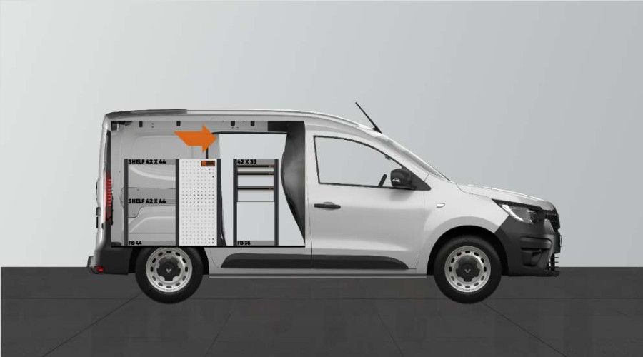 L'un des aménagements les plus populaires pour votre Dacia Dokker & Renault Express L1. L’aménagement avec une profondeur de 420 mm dispose de trois tiroirs de différentes tailles afin de varier les possibilités de rangement. Les tiroirs s’ouvrent facilement depuis la porte latérale coulissante et peuvent supporter une charge uniforme de 35 kg / tiroir. L’espace étagère derrière le bloc tiroir est idéal pour ranger vos mallettes, outils ou consommables mais peut aussi se compléter avec notre système de bacs de rangement sur rails