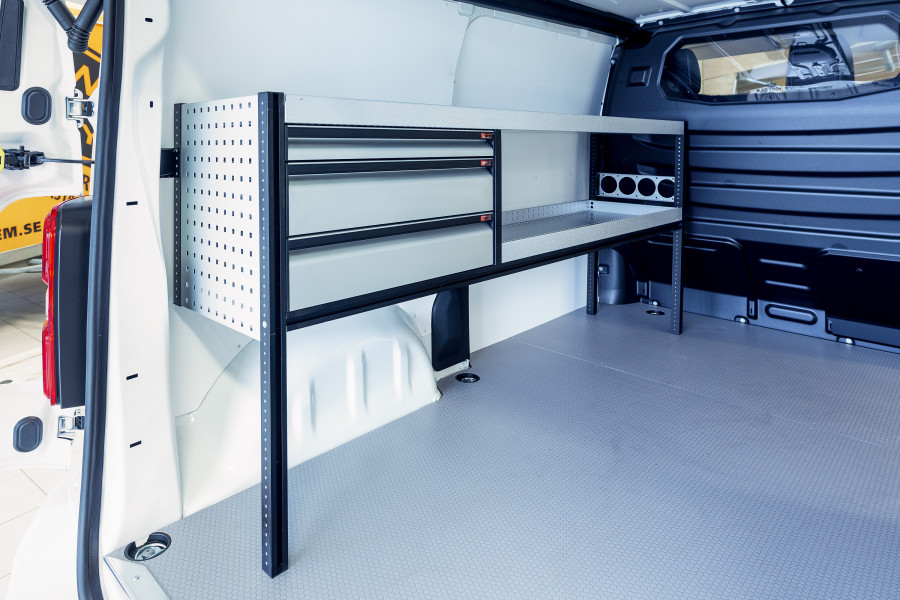 Grâce à ses tiroirs et étagères, cet aménagement utilitaire est très apprécié des conducteurs de Berlingo, Combo, Proace City & Partner L2.