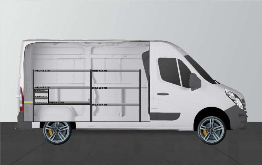 Une solution d’aménagement simple avec tiroirs et étagères pour Movano, Master & NV400 très populaire auprès des conducteurs de véhicule de maintenance.