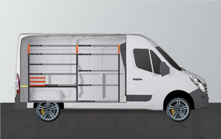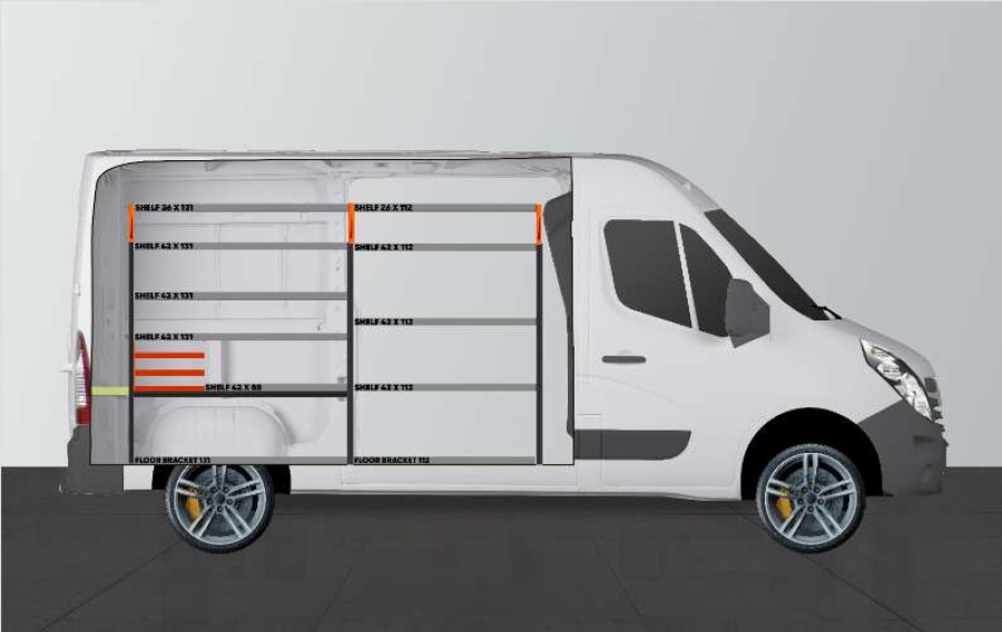Un aménagement utilitaire idéal pour ceux qui recherchent une solution de rangement polyvalente pour mallettes portatives et machines. Cette étagère comprend trois supports pour mallettes spécifiquement conçu pour nos mallettes de taille moyenne Raaco Carrylight. Nous proposons les mallettes en option. Aménagement utilitaire parfaitement adapté à votre Opel Movano, Renualt Master & Nissan NV400.