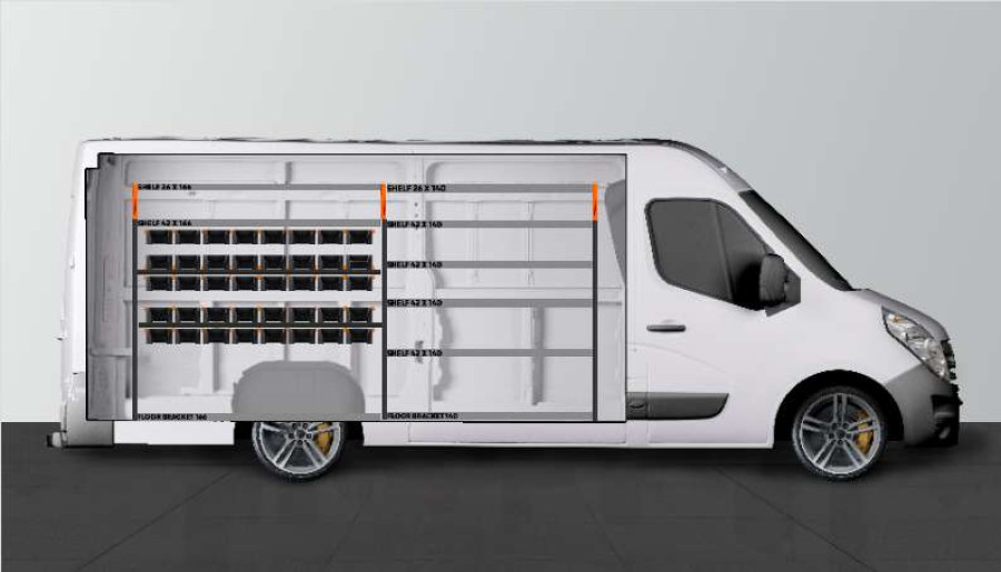 RACK est un aménagement utilitaire populaire pour votre Opel Movano, Renault Master & Nissan NV400 L3. Il est parfait pour ceux qui recherchent une solution de rangement optimale pour leur petit matériel tel que vis, raccords, boulons, forets etc. Aménagement optimisé avec 40 bacs modulaires extensibles sur rails facilement accessibles. L’avant des bacs peut être assorti d’une fenêtre transparente. A l’intérieur du bac des séparateurs peuvent être placés tous les 60 mm.