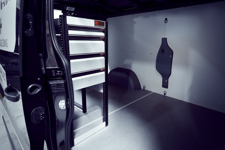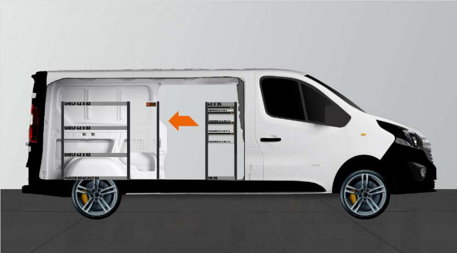 Cet amL'un des aménagements les plus populaires pour votre Nissan NV300, Renault Trafic & Fiat Talento L2. L’aménagement avec une profondeur de 420 mm dispose de trois tiroirs de différentes tailles afin de varier les possibilités de rangement. Les tiroirs s’ouvrent facilement depuis la porte latérale coulissante et peuvent supporter une charge uniforme de 35 kg / tiroir. L’espace étagère derrière le bloc tiroir est idéal pour ranger vos mallettes, outils ou consommables mais peut aussi se compléter avec notre système de bacs de rangement sur rails