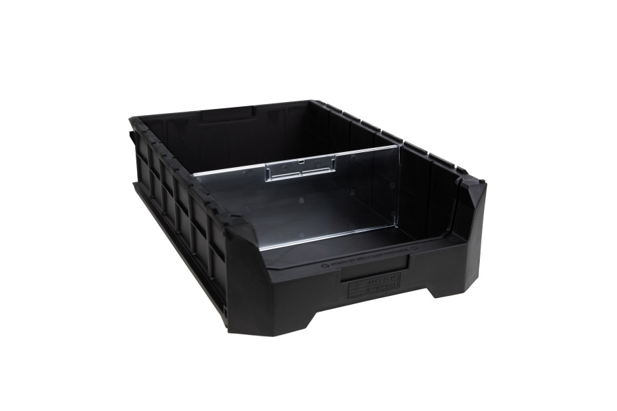 Ce bac de rangement pour étagère de 420mm de profondeur qui fait 180mm de large et 105mm de haut est parfait pour organiser votre véhicule utilitaire. Ce bac permet de ranger vos outils proprement, votre visserie ou vos consommables. Il se complète avec une fenêtre transparente avant et des séparateurs.